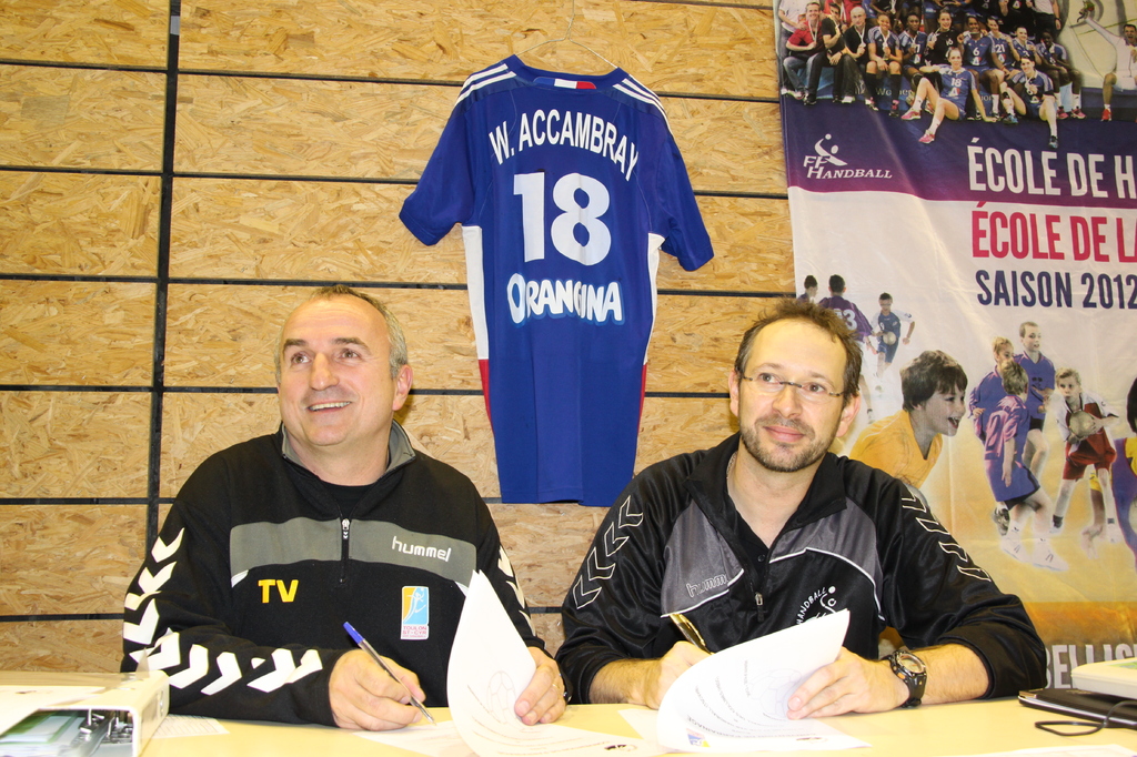 Nous avons profité du match de gala de ce mardi 10 décembre 2013 pour officialiser ce parrainage. Sur cette photo, David et Thierry VINCENT lors de la signature de la convention.