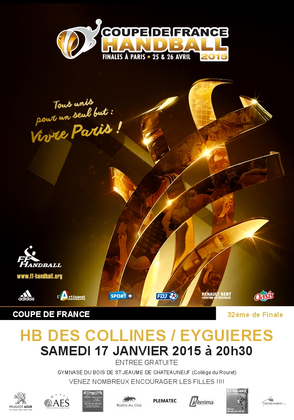 Nos séniores filles reçoivent l'équipe de Eyguières (13) qui évolue dans le championnat de Prénationale de Provence, pour le compte des 32èmes de Finale de Coupe de France, à 20h30 dans notre gymnase.