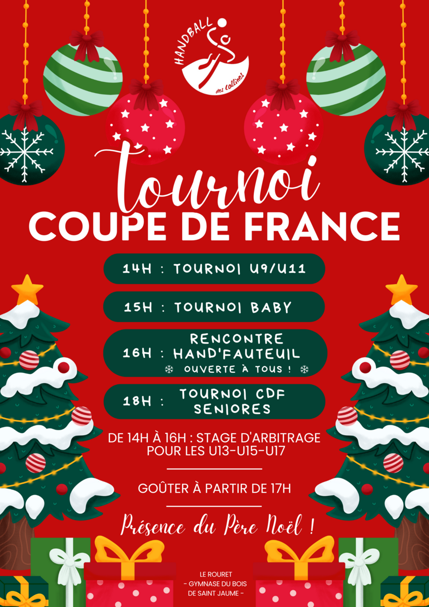 Nous profitons du 3ème tour de Coupe de France de nos Séniores Filles que nous recevons (voir plus bas) pour organiser le Noël du club pour les enfants et les grands du HBDC !!